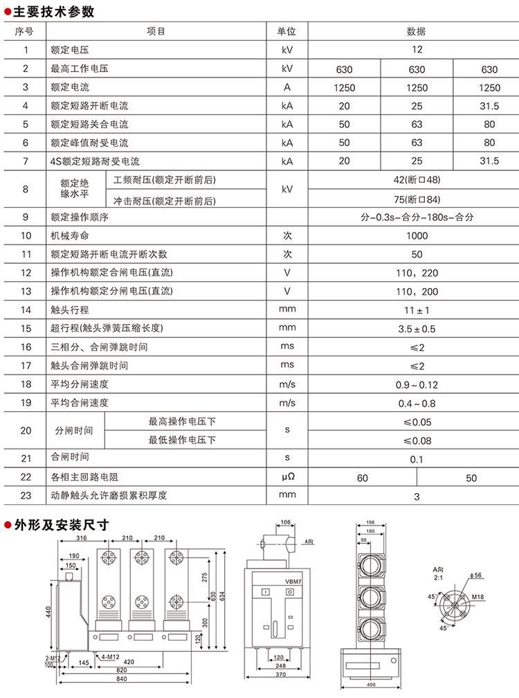 VS1(VBM7)-12系列側裝式戶內高壓真空斷路器